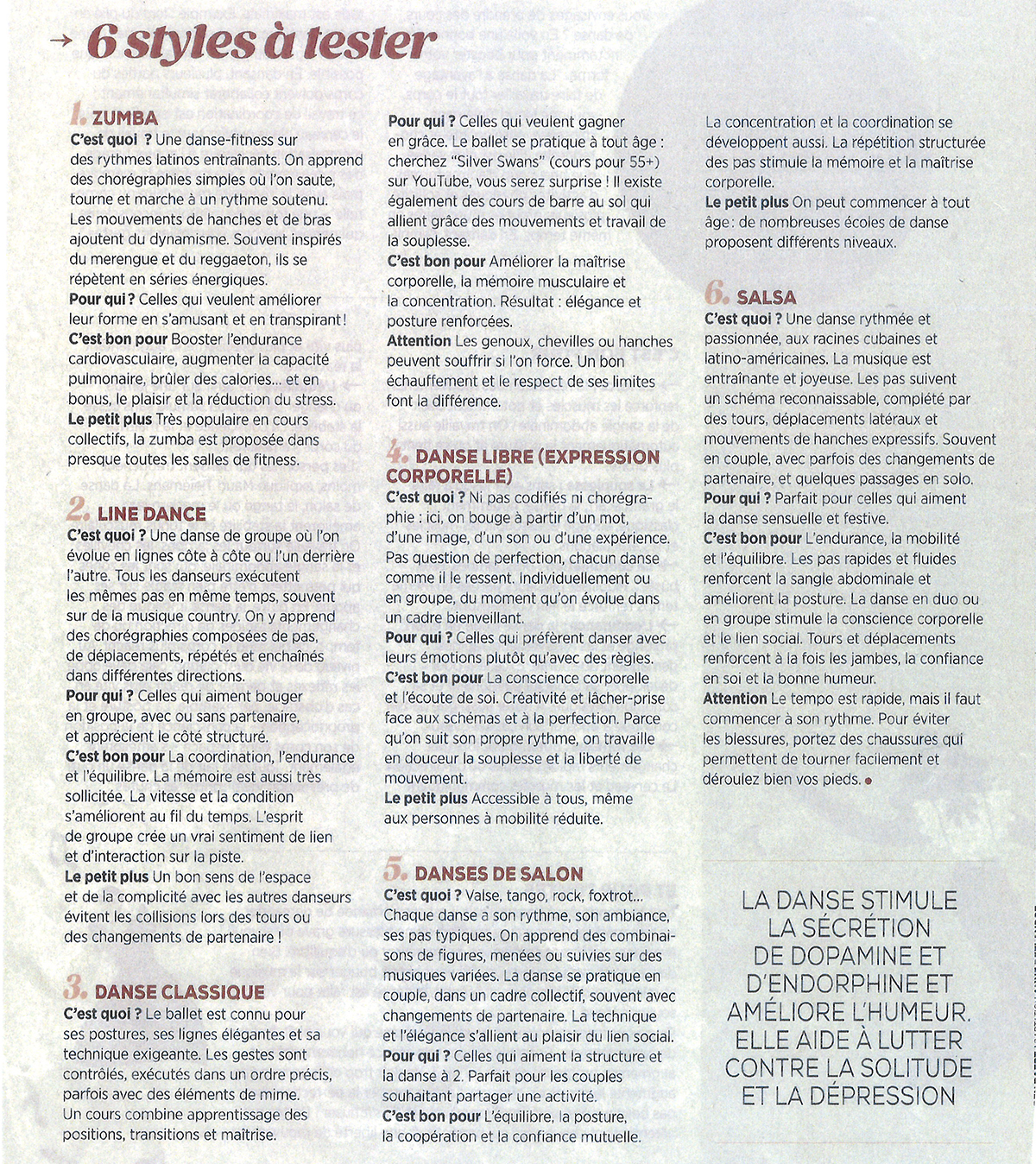 8 bonnes raisons de se mettre à la danse (Source : Femmes d'aujourd'hui - 19 octobre 2025 - Par Justine Leupe)